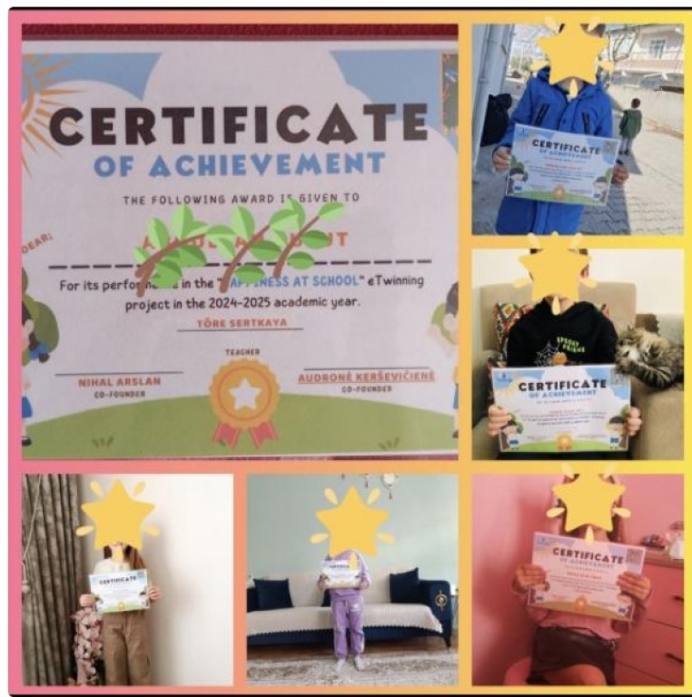 2024-2025 eğitim öğretim yılında, okulumuzda yürüttüğümüz “Happiness at School” eTwinning projemizi; sevgili öğrencilerimiz, kıymetli velilerimiz ve özveriyle çalışan öğretmenlerimizle birlikte tamamladık.